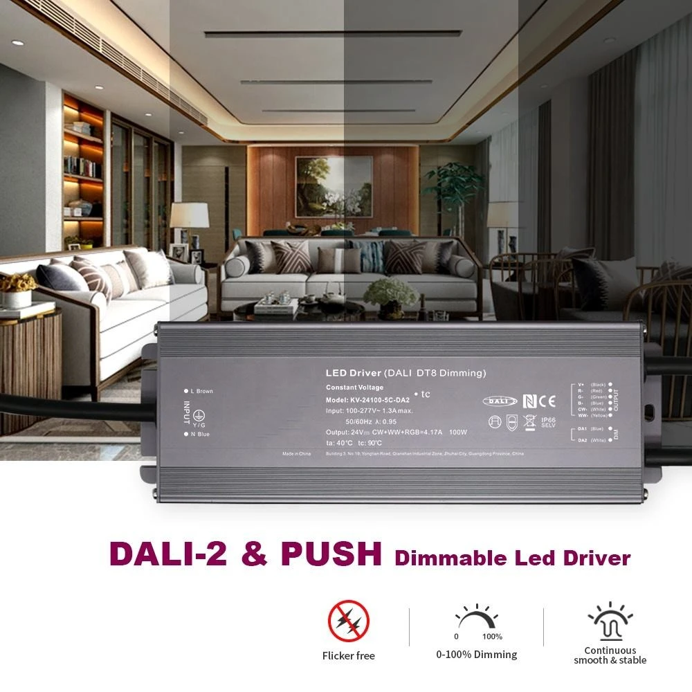 Driver LED reglabil DALI CCT de 100W tensiune constantă