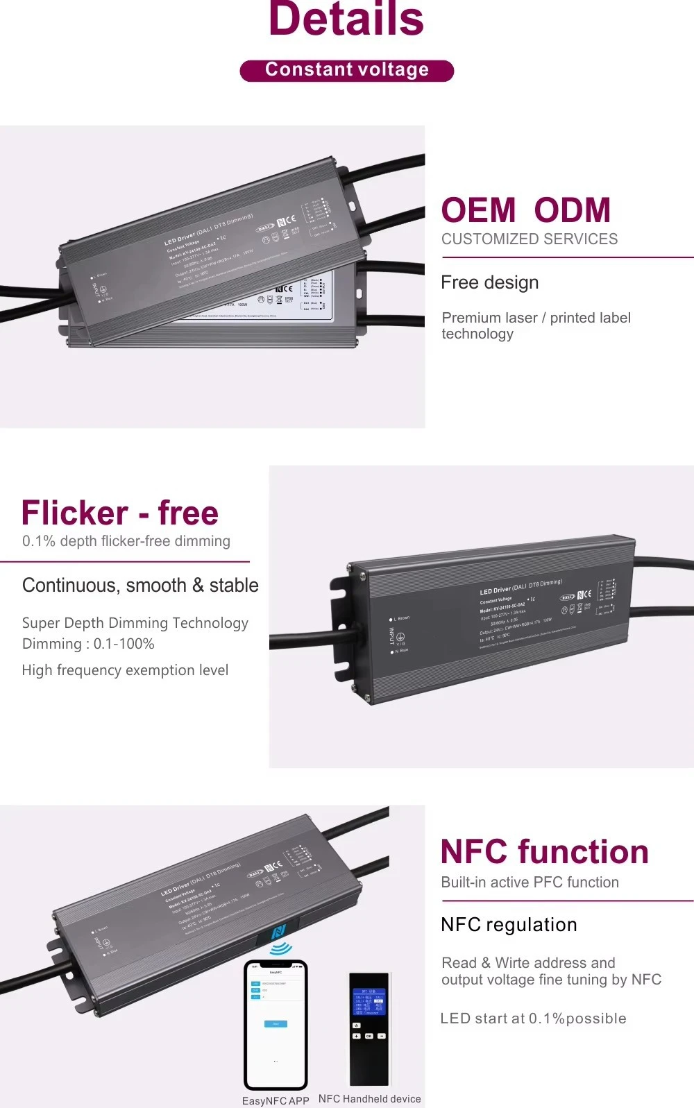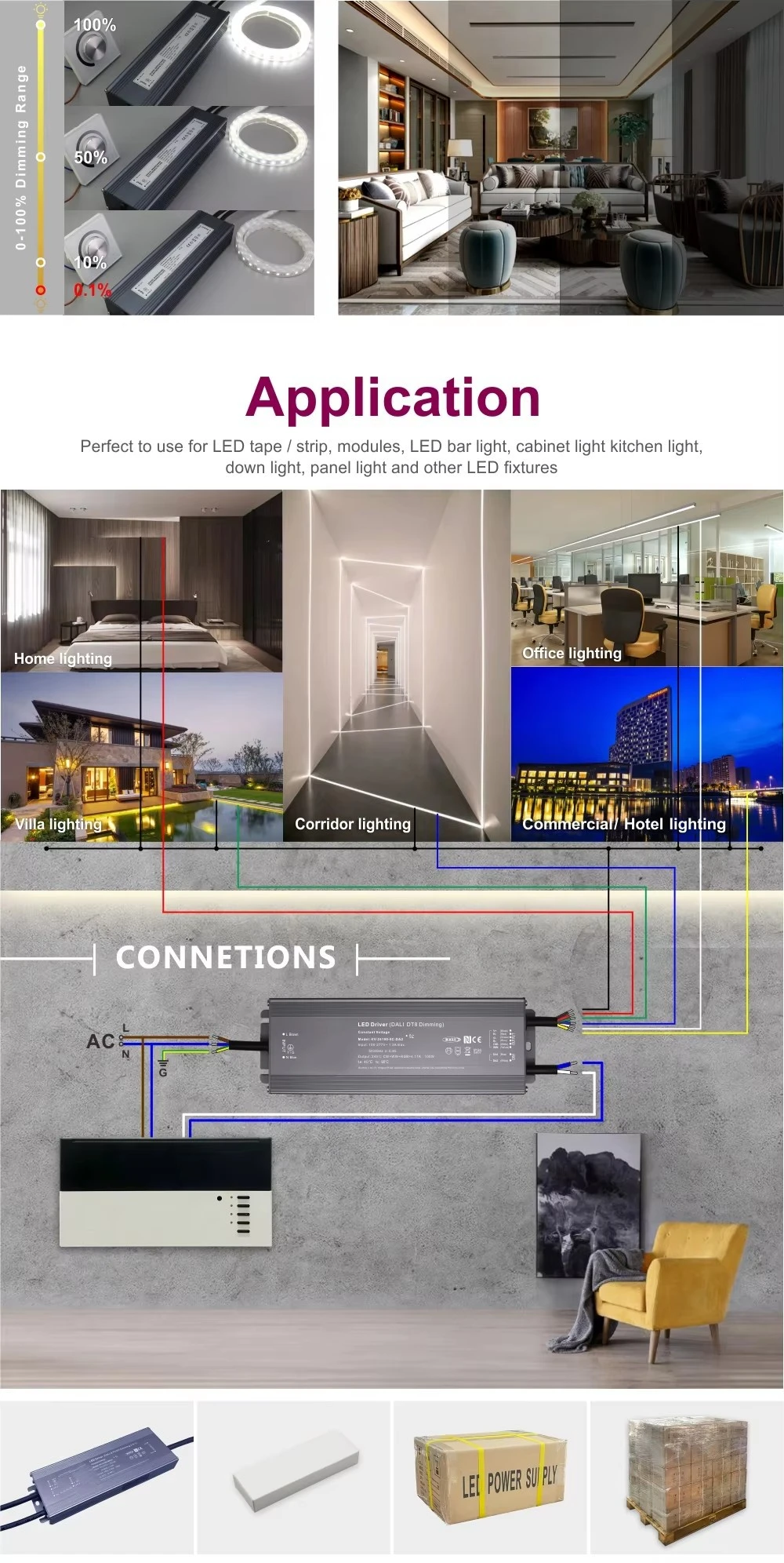 Combinând compatibilitatea universală, construcția robustă și reglarea inteligentă a luminii, acest driver este o soluție de alimentare ideală, pregătită pentru viitor, pentru aplicații profesionale de iluminat cu LED și semne mobile, garantând performanță și durabilitate.