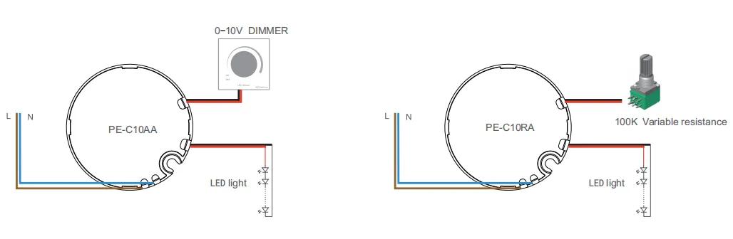 1. Diferența dintre pe-c10aa și pe-c10ra: pe-c10aa este 0-10V / 1-10V / PWM reglare, iar pe-c10ra este o reglare specială pentru rezistență variabilă de 100k 2. Parametrii măsurați se efectuează în mediul de intrare 230V AC de 25 de grade 3. Alimentare cu curent constant, în starea fără luminozitate, curentul de ieșire este valoarea maximă setată 4. Tensiunea conectată la lampă trebuie să fie în intervalul de tensiune marcat al sursei de alimentare 5. Acest produs adoptă un proces de disipare a căldurii cu silicagel de conducție a căldurii pentru a echilibra temperatura internă și a asigura siguranța și fiabilitatea produsului 6. Distanța de testare a liniei de semnal: 1,5 m2 linie ecranată, 200 m cu 40 de surse de alimentare. Datorită factorului distanță, distanța este prelungită, iar numărul de comenzi va fi redus. Lungimea liniei de semnal este Creșterea va duce la semnal atenuare, astfel încât numărul de lămpi controlabile va scădea odată cu creșterea distanței de control |