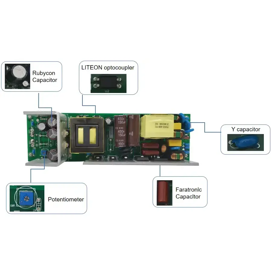 Curent constant precis · Durabilitate de lungă durată: driverul LED cu intensitate constantă triac STARWELL adoptă un cip de curent constant de înaltă precizie. Eroarea curentului de ieșire este ≤ ± 3%, curentul de ieșire este stabil la 1200mA, iar adâncimea pâlpâirii este <5%, eliminând astfel problemele de pâlpâire și atenuarea luminii. Poate prelungi durata de viață a corpurilor de iluminat LED cu mai mult de 30%, iar durata de viață continuă poate ajunge la 50.000 de ore, reducând astfel semnificativ costurile de înlocuire și de întreținere.