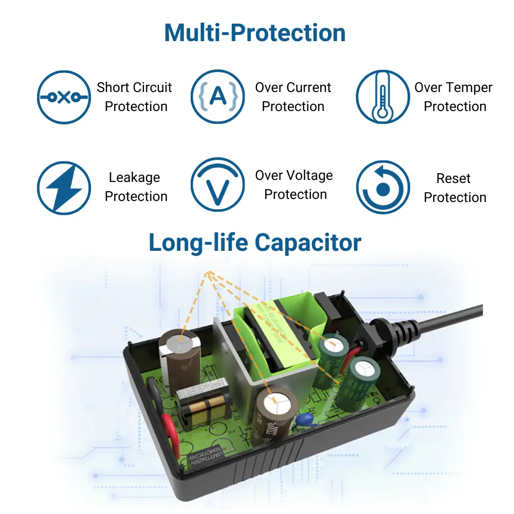 Designul său compact cu plug-in economisește spațiu. Oferind un adaptor de putere de ieșire stabil și consistent de 12 W, este perfect potrivit pentru routere, comutatoare de rețea, benzi LED și diverse alte dispozitive.
