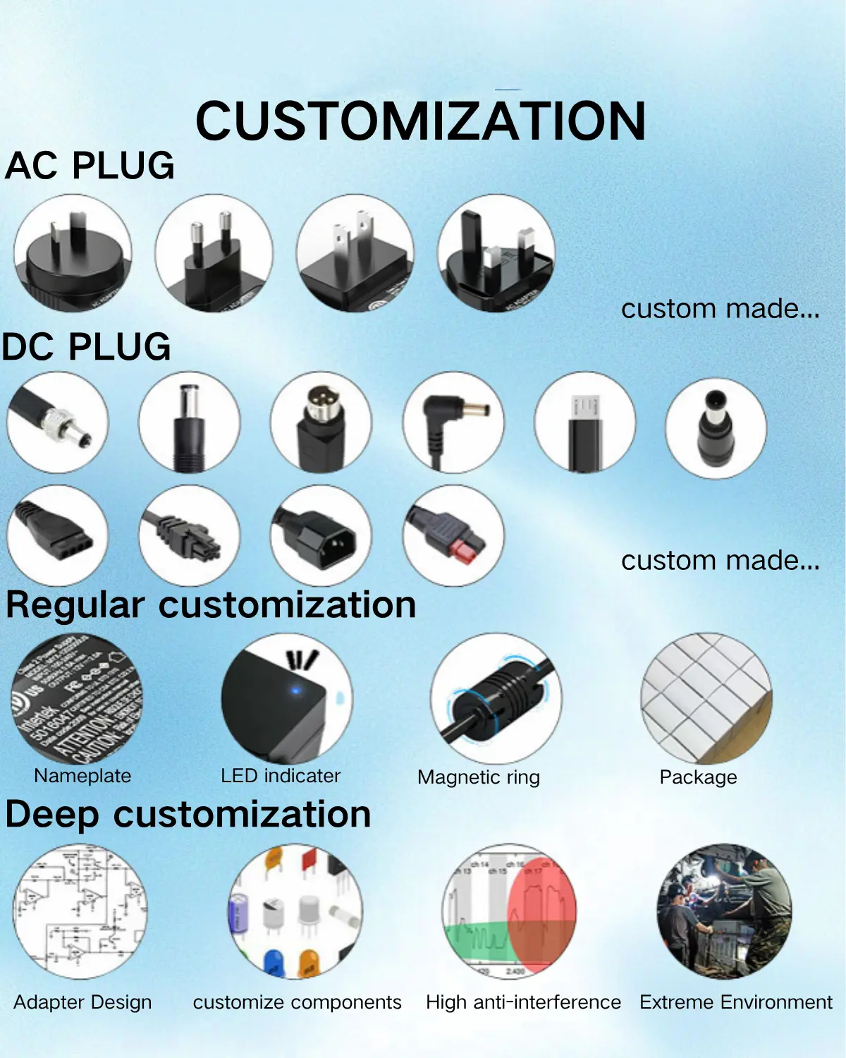 Suntem o fabrică de surse de alimentare AC/DC care poate personaliza orice adaptor de alimentare și poate trece certificările relevante.