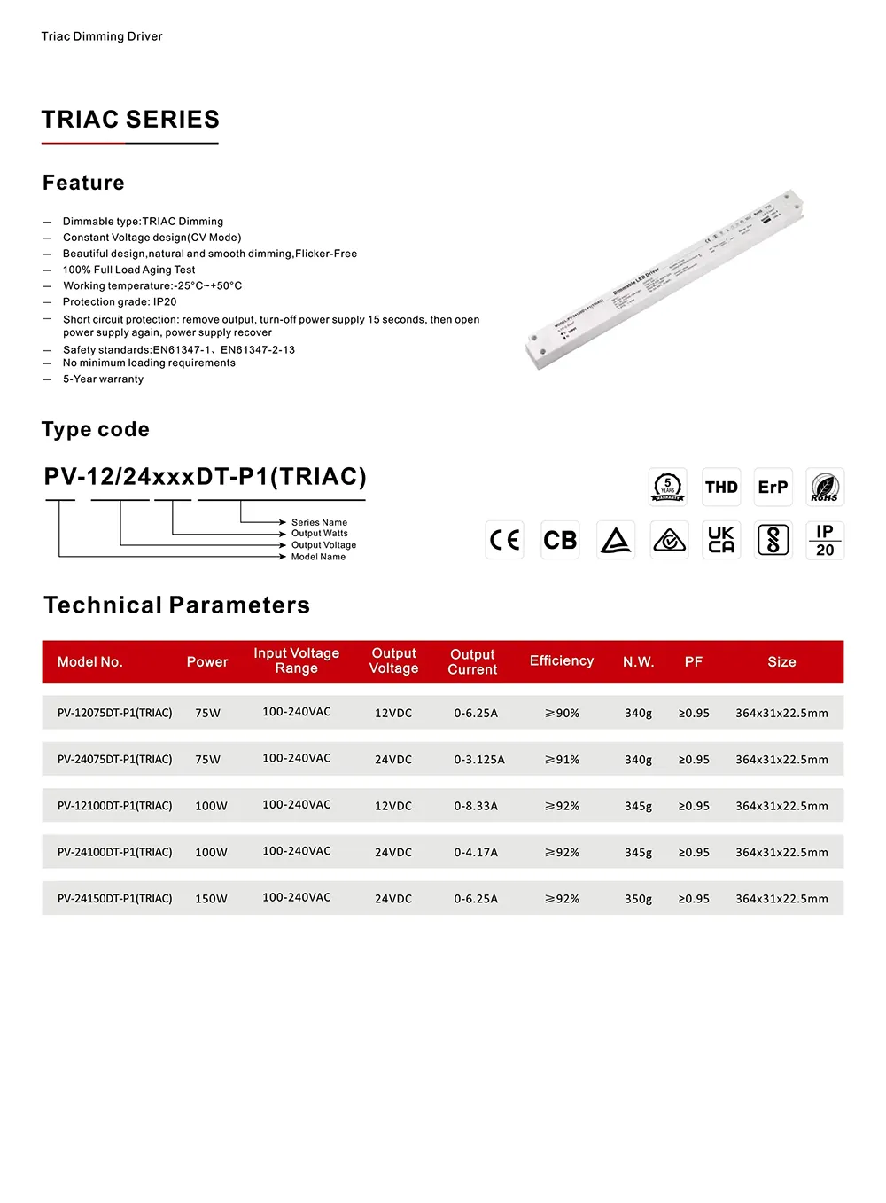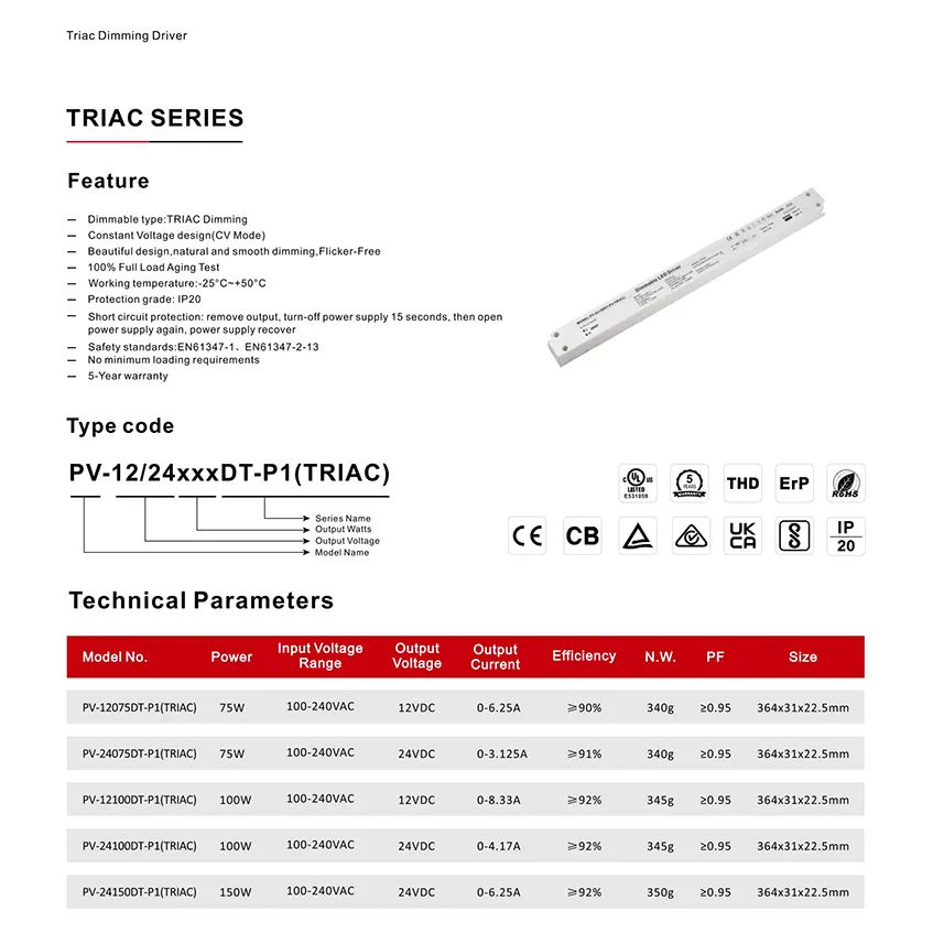 Specificația driverului LED Starwell cu tensiune constantă Triac reglabil: