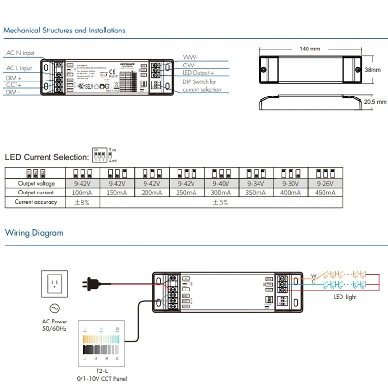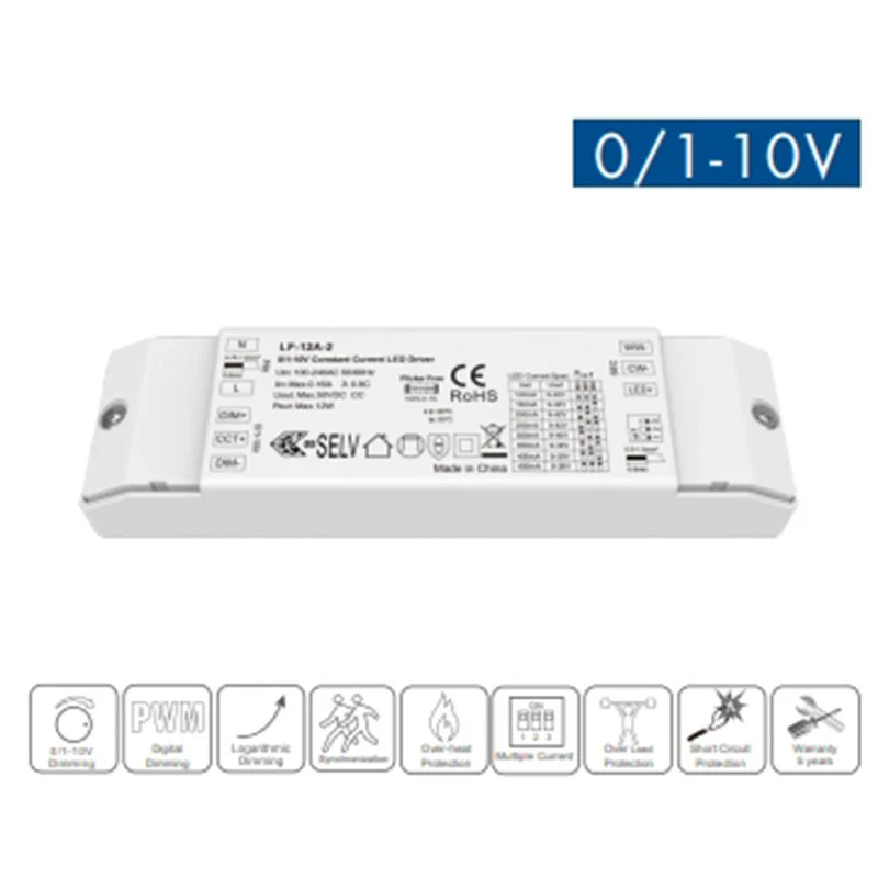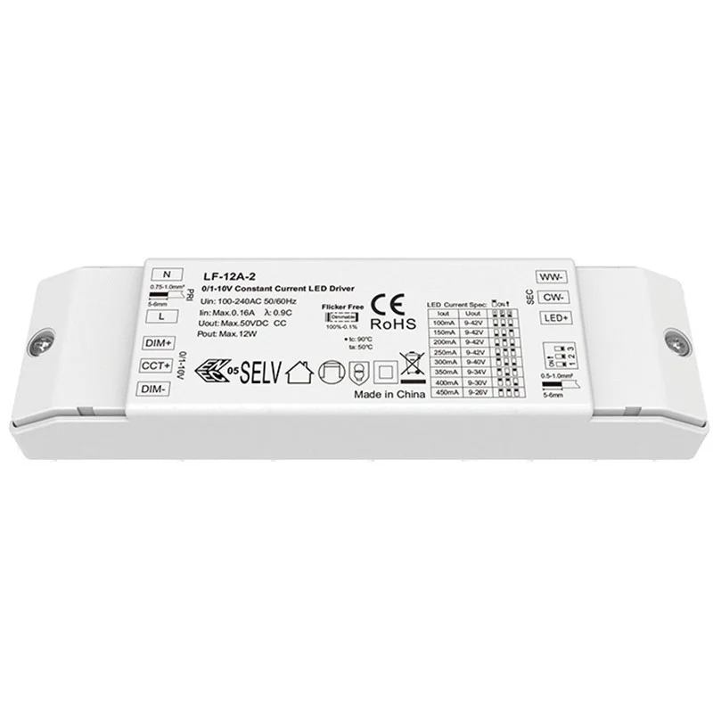 1. Dimmare precisă 0-10V CCT: Driverul LED cu intensitate constantă 0-10V CCT de 12W acceptă reglarea lină a luminozității și a temperaturii culorii cu răspuns liniar de reglare a luminii, compatibil cu controlerele de 0-10V pentru controlul personalizat al ambianței.