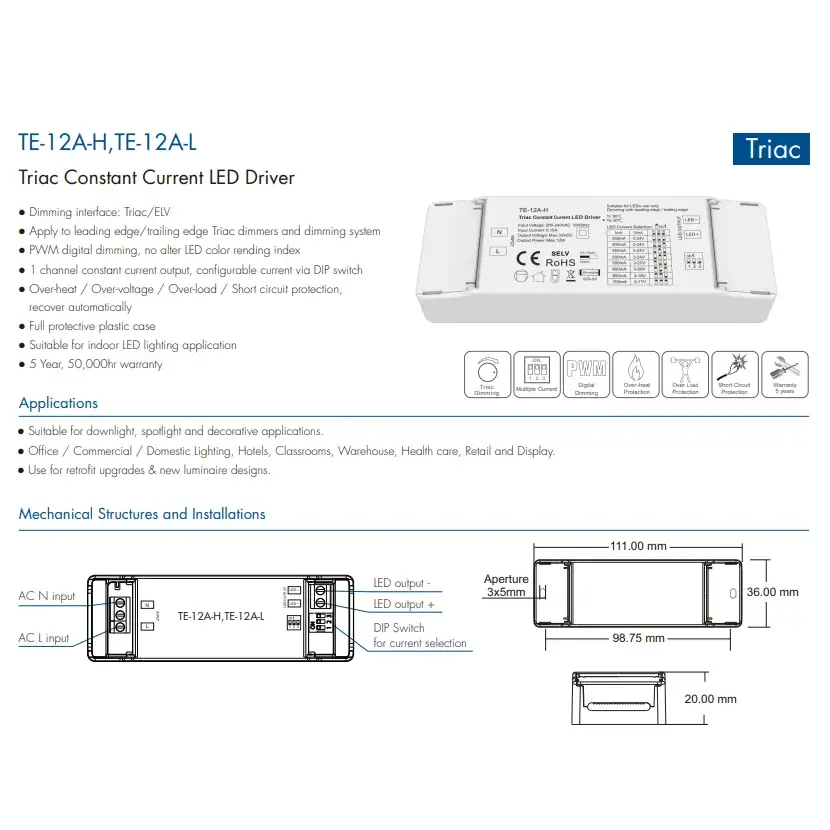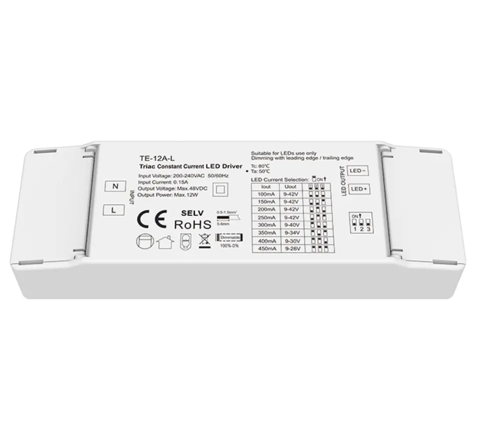 Driverul led triac de înaltă calitate de 12 W Starwell integrează funcții de protecție la supratensiune, supracurent și scurtcircuit și are un factor de putere ridicat și o distorsiune armonică scăzută, îndeplinesc multiple standarde internaționale de eficiență energetică și siguranță. Designul său compact îl face ușor de instalat și potrivit pentru diverse scenarii de iluminare interioară, cum ar fi downlight-uri, spoturi și lumini decorative, făcându-l o soluție ideală pentru renovări care economisesc energie și aplicații de iluminat inteligent. ProdusCaracteristici: