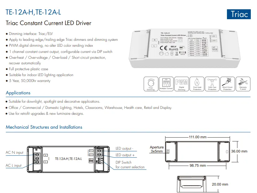 Driver LED reglabil Triac cu curent constant de 12 W de dimensiune mică