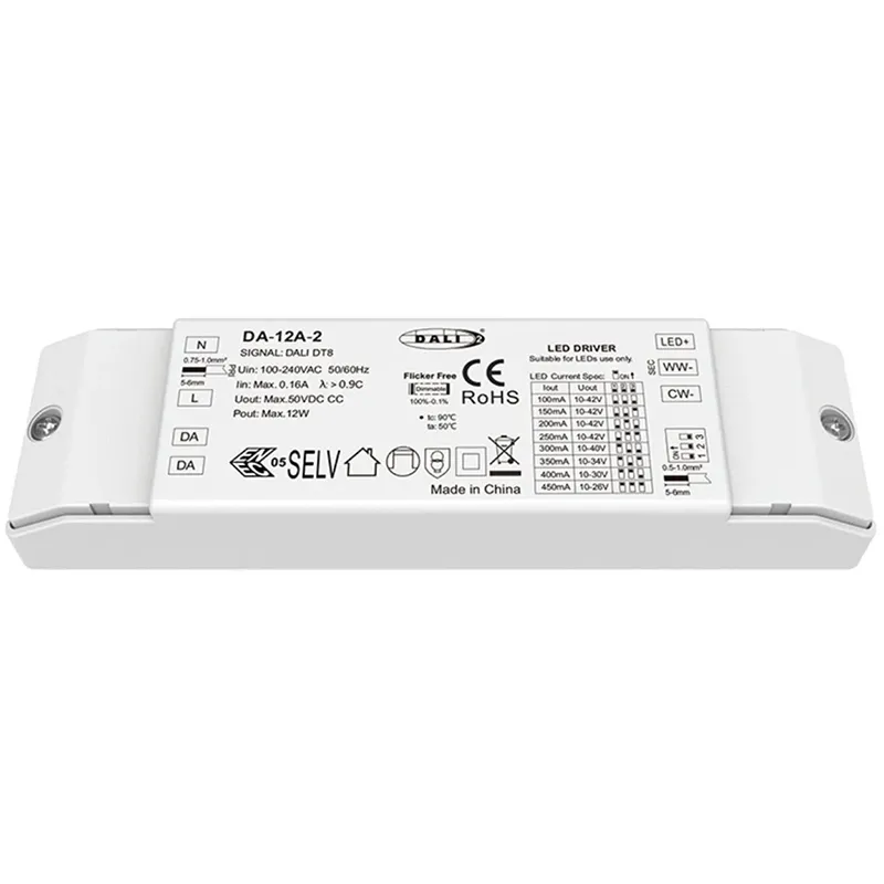 Driverul LED de înaltă calitate DALI CW WW CCT de 12 W de la fabrica STARWELL este proiectat pentru aplicații de iluminat alb premium, reglabil, care necesită un control precis și performanță fiabilă. Acest driver compact, de înaltă eficiență oferă o ieșire stabilă de curent constant de 12 W (12 V, 1000 mA), asigurând performanță și longevitate optime pentru modulele LED conectate. Driverul nostru LED DALI CW WW CCT de 12W de înaltă calitate dispune de o interfață DALI dublă sofisticată, care acceptă atât reglarea DALI-2 (DT8) pentru o reglare uniformă de 10%-100% lină, cât și reglarea independentă CCT (Temperatura de culoare corelată) de la 2700K alb cald la 6500K lumina rece. Cu o eficiență tipică impresionantă de >90% și un factor de putere ridicat (PF>0,9), reduce la minimum risipa de energie și sarcina rețelei. Găzduit într-o carcasă compactă cu clasificare IP20, oferă funcționare la sarcină maximă într-un interval larg de temperatură de la -20°C la +50°C, făcându-l o soluție de putere versatilă și inteligentă pentru iluminatul arhitectural, comercial și rezidențial de ultimă generație.
