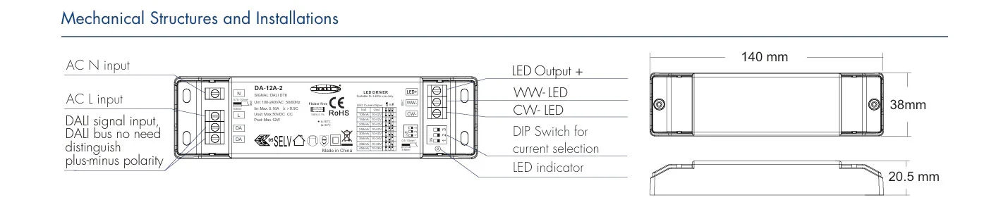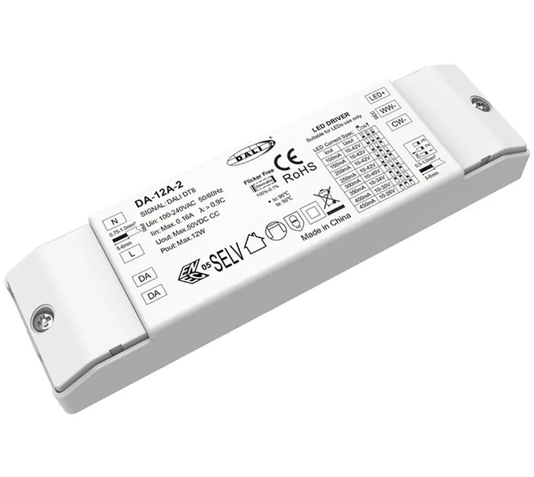 Găzduit într-o carcasă compactă IP20, acest driver LED dimmabil simplifică instalarea chiar și în spații restrânse, cum ar fi profile LED sau carcase de fixare. Combinând ieșirea cu curent constant, reglarea CCT amplă și compatibilitatea standard DALI-2, servește ca un driver ideal și de viitor pentru downlight-uri albe reglabile, corpuri liniare și iluminat arhitectural - integrându-se perfect în ecosistemele moderne de iluminat inteligent ca un driver versatil cu LED-uri DALI CCT cu curent constant.