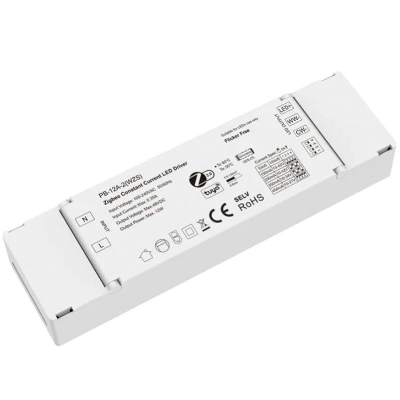 Driverele LED reglabile TUYA Zigbee CCT de 12 W certificate CE de la fabrica STARWELL sunt o soluție de putere de iluminat inteligentă de înaltă eficiență, concepută pentru sistemele moderne de iluminat rezidențial și comercial. Suportă o tensiune largă de intrare de 100~240VAC 50/60Hz, permițând o aplicare globală stabilă. Cu o putere nominală de ieșire de max.12 W, acest driver realizează un control fluid al gradului CCT bazat pe protocolul wireless TUYA Zigbee, permițând utilizatorilor să ajusteze atât luminozitatea, cât și temperatura culorii de la distanță prin APP, asistenți vocali și scene inteligente.