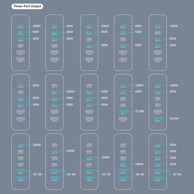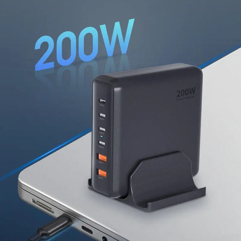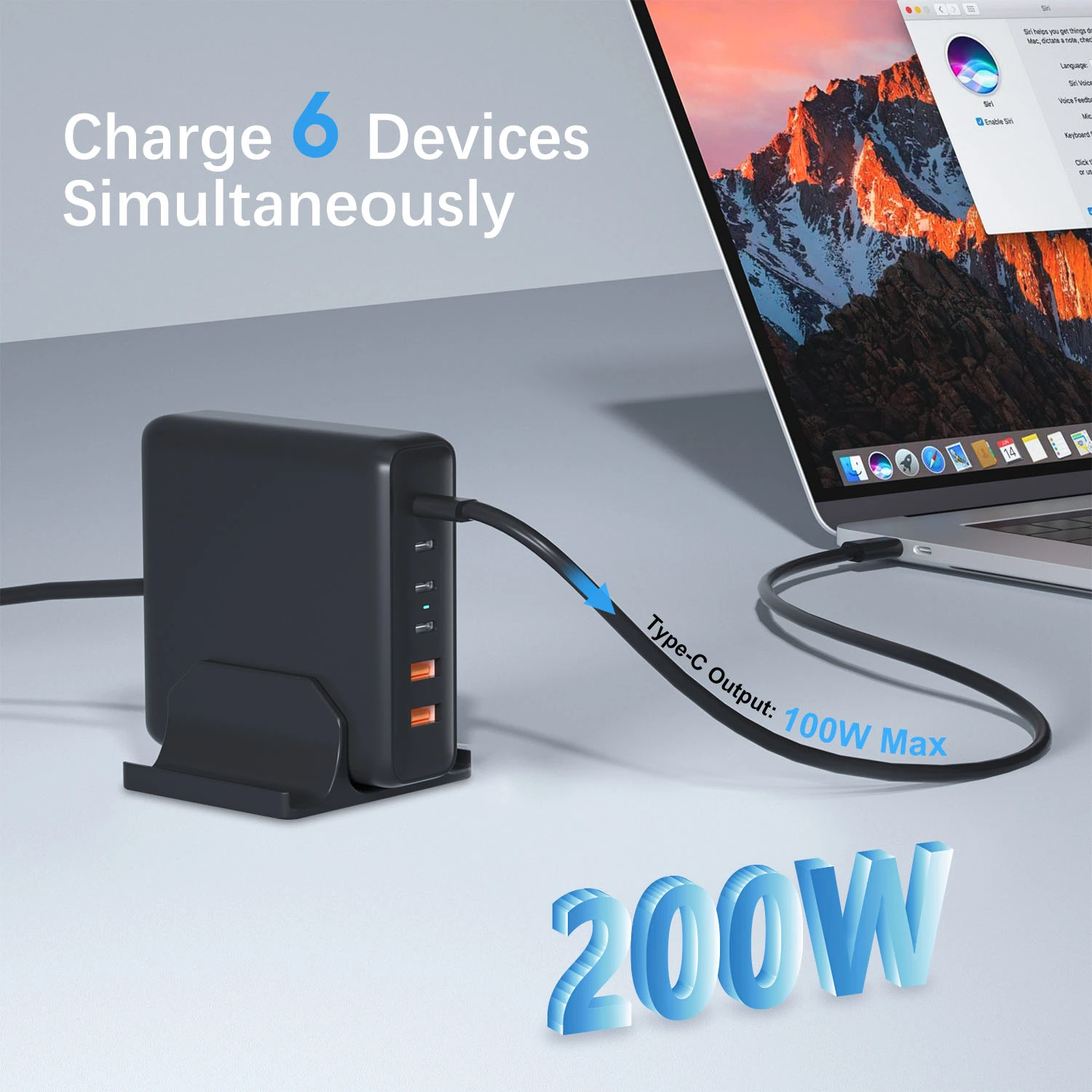 Încărcător rapid GAN 200W 4 USB-C + 2 USB-A încărcător PD de 200W