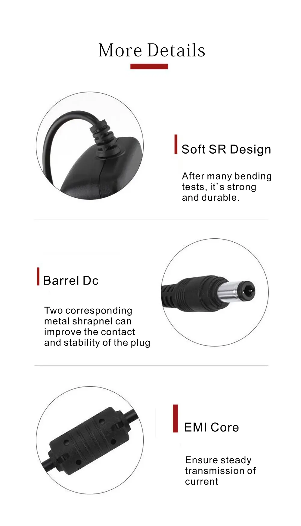 3. Posibilitatea conectorului: confirmați că dimensiunea ștecherului (de exemplu, 5,5 mm x 2,1 mm) și polaritatea (de multe ori pozitivă centrală) se potrivesc cu mufa DC a dispozitivului. O nepotrivire poate cauza daune.