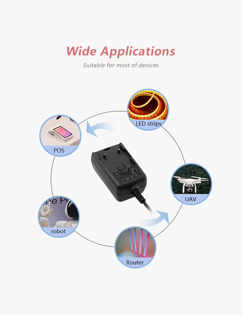 Gamă largă de scenarii de aplicație: Fie că este vorba pentru alimentarea benzilor de lumină cu LED-uri, difuzoarelor inteligente, routerelor de rețea sau a altor aparate electrice mici, această sursă puternică de alimentare cu priză interschimbabilă Switching este alegerea ta cea mai ideală și liniștitoare!