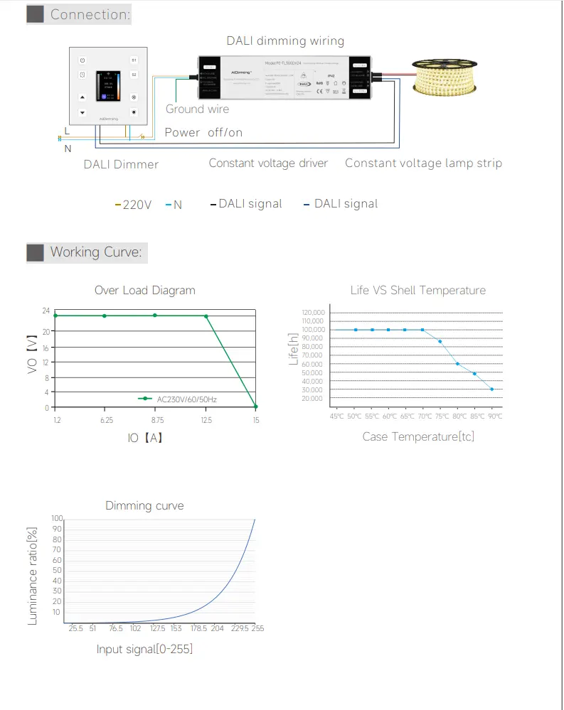 Cu o carcasă compactă, IP20, este ușor de instalat în golurile din tavan, dulapuri de control sau corpuri de iluminat. Designul său cu tensiune constantă asigură performanțe consistente pentru benzi, panouri și module LED conectate în paralel, făcându-l ideal pentru spații comerciale, birouri, hoteluri și proiecte de iluminat arhitectural în aer liber.