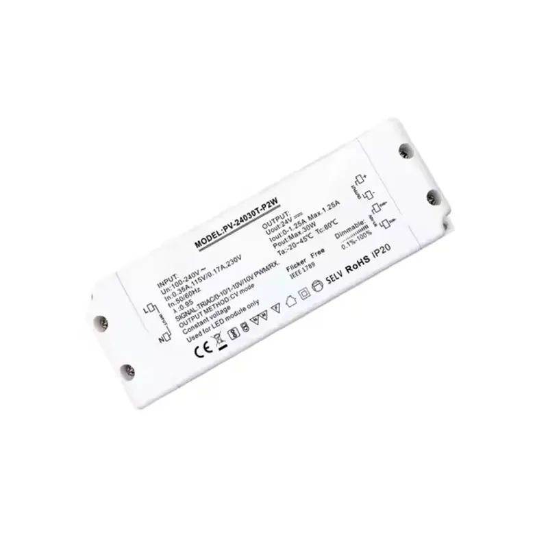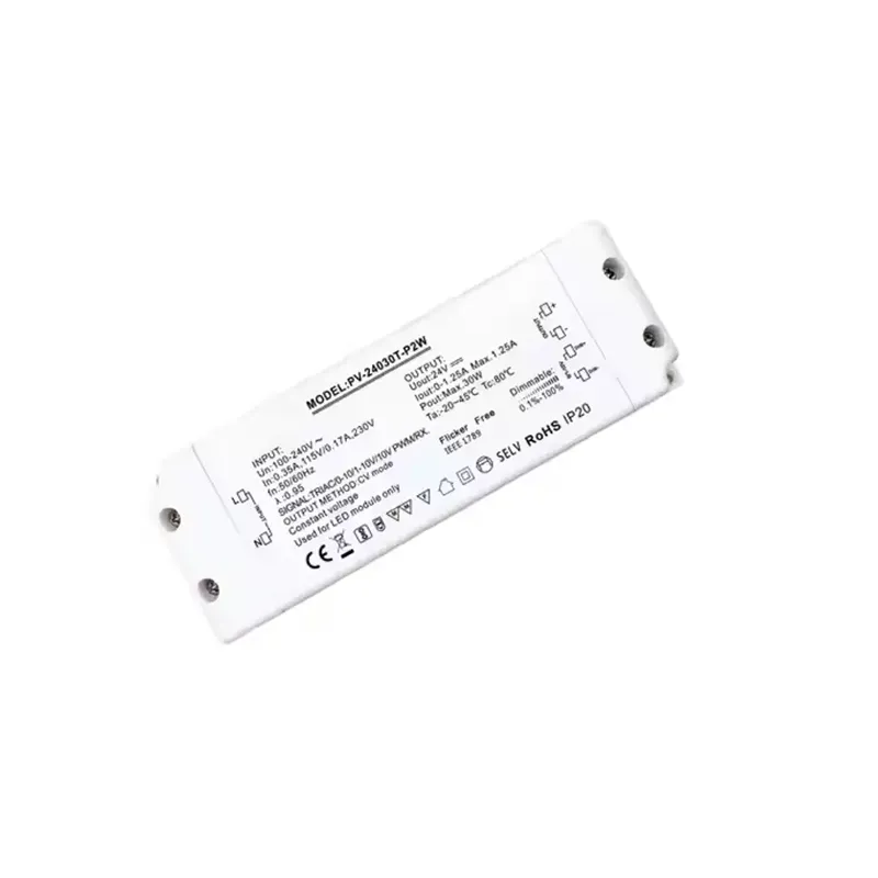 Driverul LED de înaltă calitate, de 30 W, cu tensiune constantă, este oferit de producătorul chinez Starwell, care este un driver LED de înaltă performanță, multifuncțional, de 30 W, cu tensiune constantă, conceput special pentru sistemele de iluminat cu LED care necesită un control precis al luminii. Este compatibil atât cu reglarea tradițională cu tăiere de fază (Triac) de vârf, cât și cu protocoalele avansate de reglare a intensității 0-10V analogice, funcționând ca un driver LED dimmabil Triac 0-10V de 30W, oferind utilizatorilor flexibilitate de instalare și adaptabilitate la scenă.