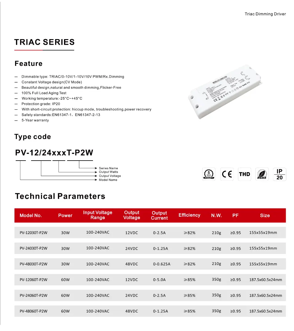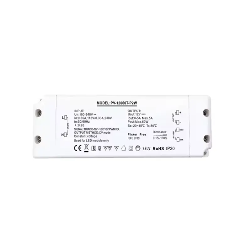 Driver LED cu reglaj triac ultra subțire de tensiune constantă de 60 W
