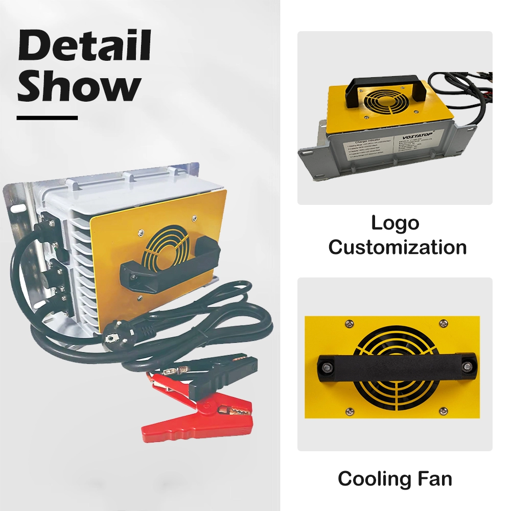 Cu protecție încorporată împotriva supratensiunii, supracurentului, scurtcircuitului, inversării polarității, supratemperaturii și subtensiunii bateriei, încărcătorul asigură o funcționare sigură în toate condițiile. Designul etanș, fără întreținere, reduce timpul de nefuncționare și scade costul total de proprietate, făcându-l o alegere fiabilă atât pentru operatorii de flote, cât și pentru producătorii de echipamente.