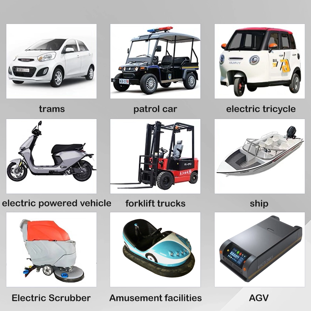Aplicații produs Mașini cu bara de protecție electrică și atracții de distracție Vehicule pentru vizitarea obiectivelor turistice și cărucioare de golf Vehicule de patrulare și cărucioare de securitate Stivuitoare și echipamente de manipulare a materialelor Mașini de curățat podele și mașini de curățat Vehicule cu ghidaj automat (AGV) pentru depozite Nave electrice, bărci și nave utilitare maritime