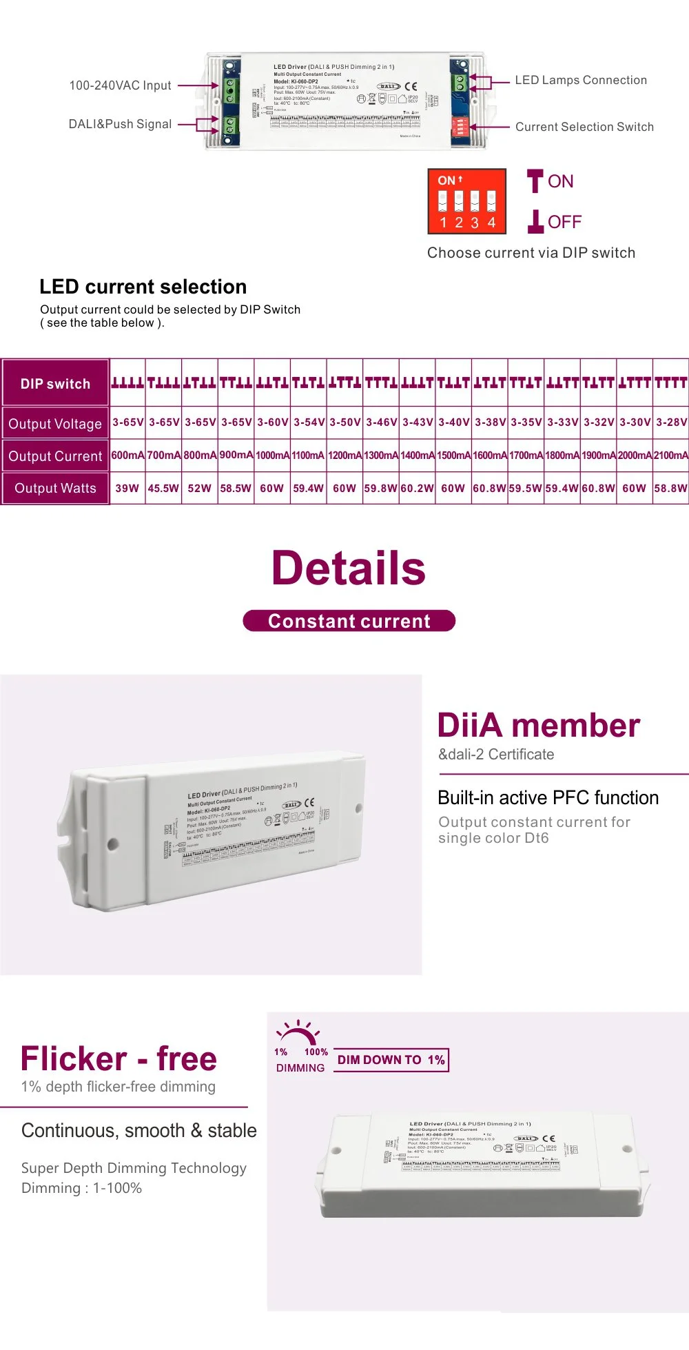 Driver led CCT cu curent constant de 60W Dali Dimming |