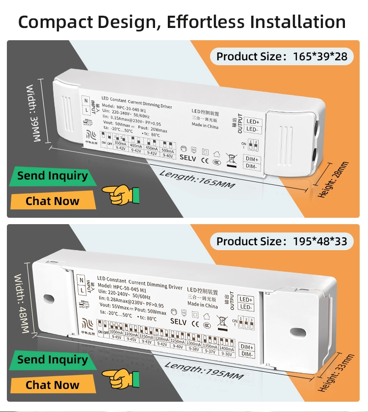 Tensiune mare și compatibilitate cu putere ridicată pentru o adaptabilitate mai puternică: Tensiunea maximă de ieșire a driverului LED Stawell cu curent constant 0-10V este de 50 volți, iar puterea maximă de ieșire este de 20 wați. Poate fi compatibil cu 3 până la 15 panglici LED conectate în serie și este potrivit pentru diverse produse de iluminat LED cu o putere de 20 wați sau mai puțin, cum ar fi spoturi, downlight-uri și panouri luminoase etc. Nu este necesară potrivirea suplimentară a driverului, reducând astfel costurile de selecție și aplicare.