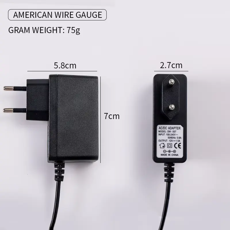 Adaptorul de alimentare comutator de înaltă calitate UE Starwell este un adaptor de alimentare comutator compact, de înaltă eficiență, cu priză de perete, conceput pentru a converti curentul alternativ (AC) de la o priză standard de perete într-o ieșire stabilă și reglată de curent continuu (DC) de 12 volți. Cu o capacitate maximă de ieșire de 1,5 Amperi.