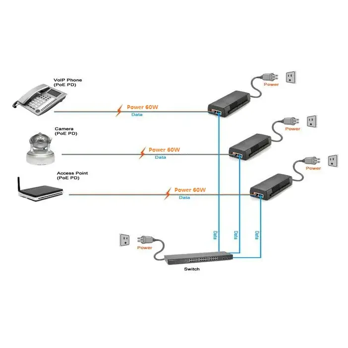 Oferă o ieșire de până la 60 W și acceptă pe deplin standardele IEEE 802.3bt/at/af. Acesta alimentează atât dispozitive cu putere redusă (15,4 W) cât și echipamente de mare putere (30 W/60 W), acoperind aproape toate dispozitivele alimentate prin Ethernet și asigurând o compatibilitate puternică PoE.