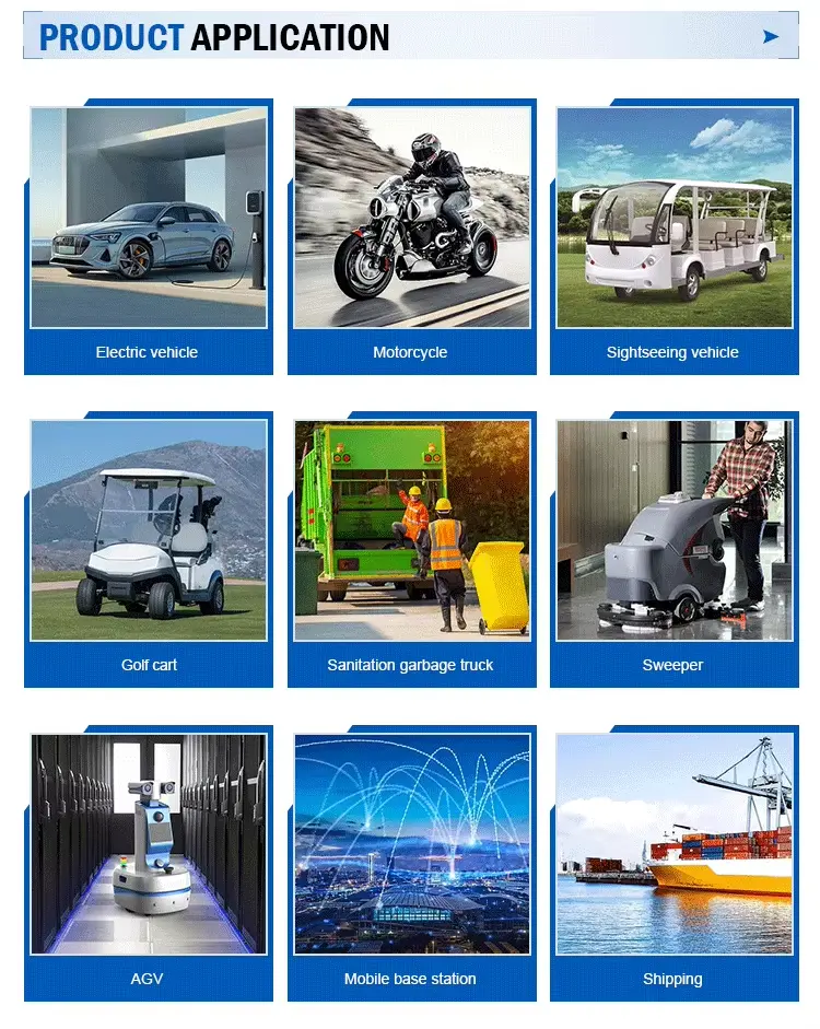 Utilizare: Motocicletă/Scuter, Tricicletă, Cropper, Măturător, Stivuitor, Camion, Autobuz electric, Baterie cu plumb, Vehicul electric, Vehicul de vizitare a obiectivelor turistice, Vehicul logistic, Vehicul de curățare, Mașină de patrulare, Buggie de dune, Navă, Echipament de comunicare