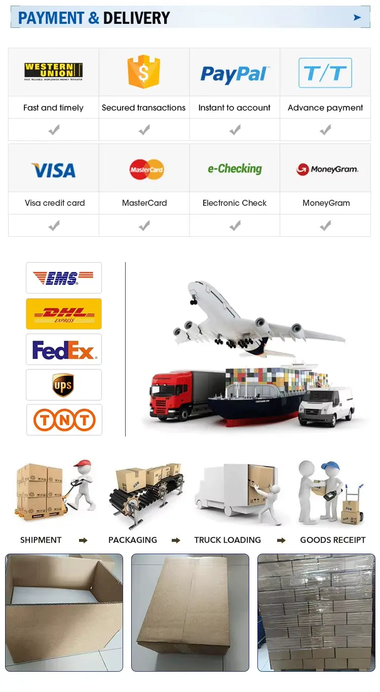 A4: Comenzile mici sunt expediate prin expres (FEDEX, DHL, EMS, TNT). Comenzile mari sunt expediate pe mare sau pe aer. Pret FOB disponibil. Puteți folosi expeditorul dvs. sau al nostru.