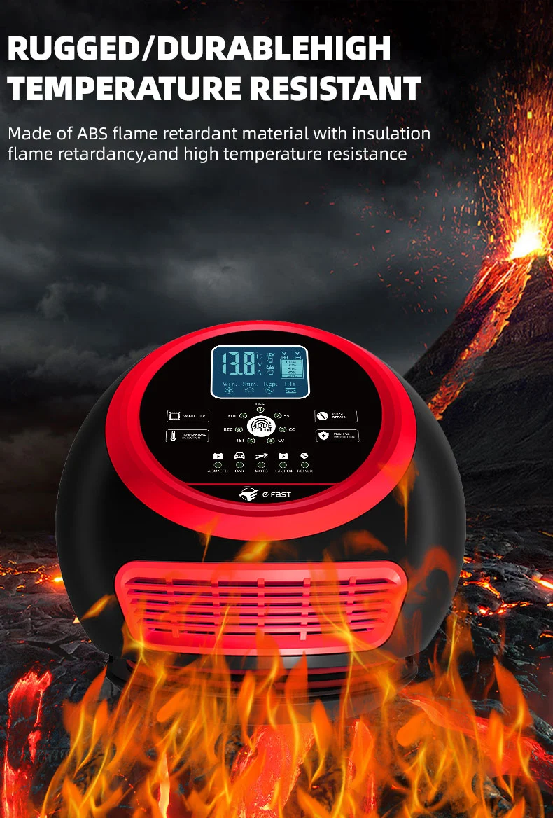 (3) Mod iarnă și vară: în timpul procesului de încărcare, detectați temperatura ambiantă, ajustarea în timp util a stării de încărcare a produsului pentru a asigura durata de viață a bateriei și siguranța încărcării, modul de iarnă: afișaj LCD fulgi de zăpadă, modul de vară: afișaj LCD soare