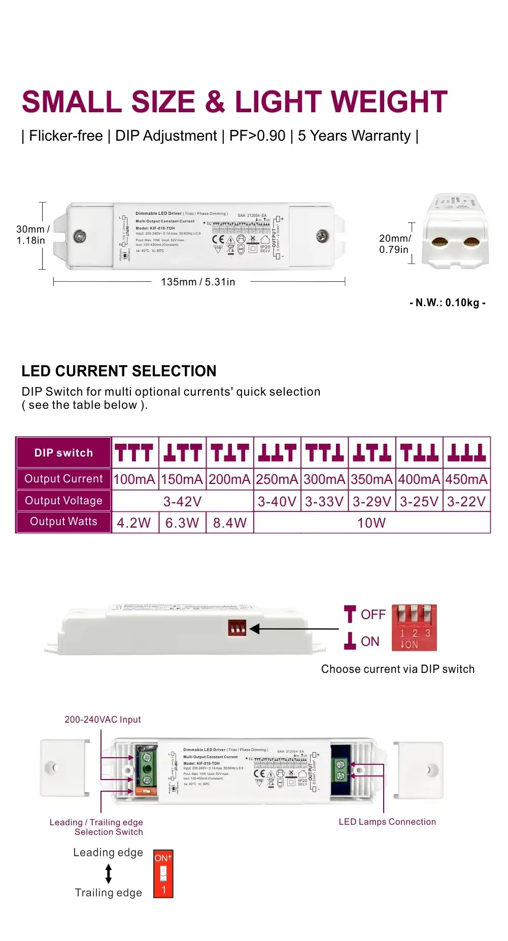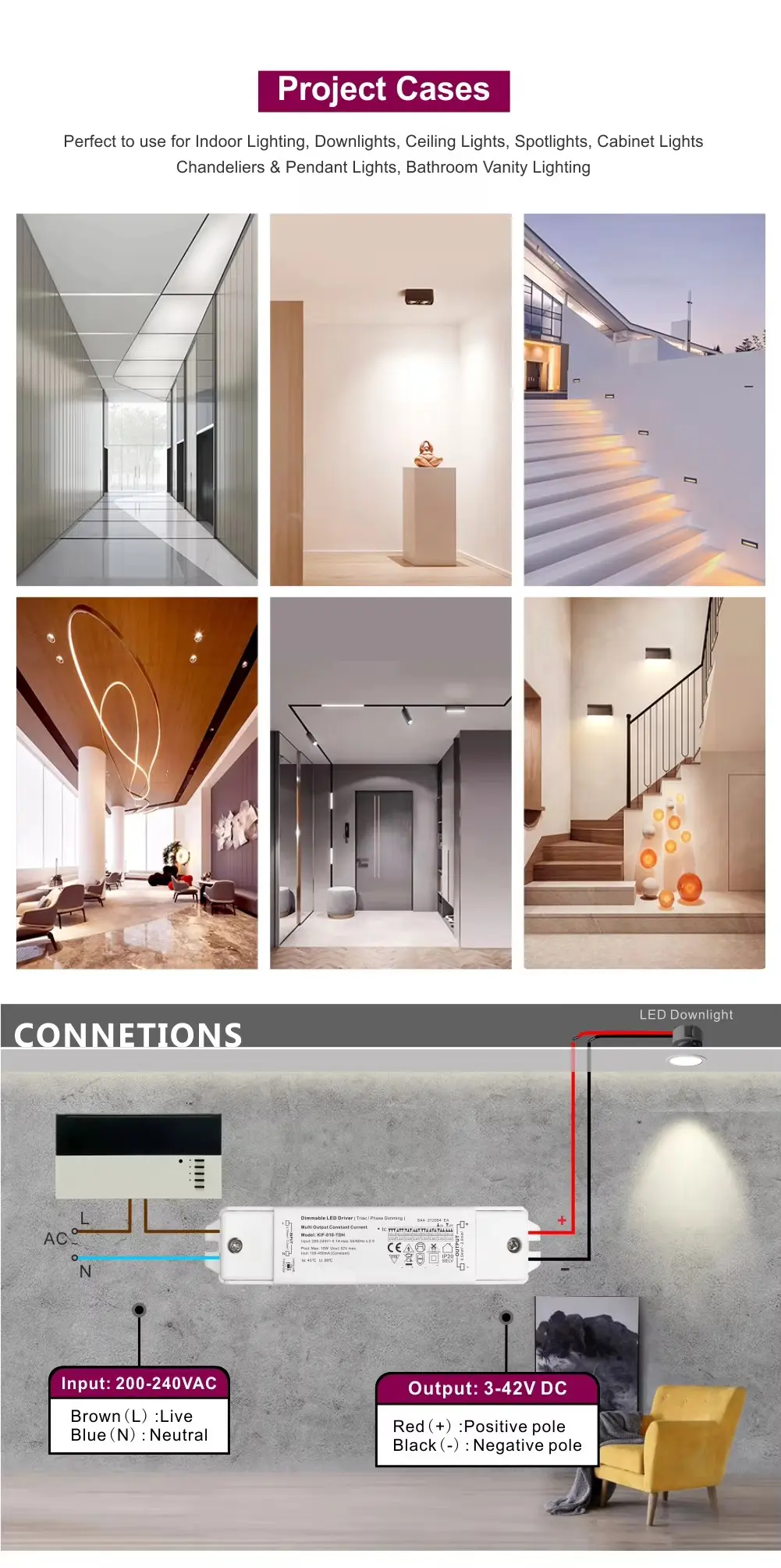 Curent constant stabil și de protecție: Menține o ieșire de curent precisă și constantă către modulele dvs. LED, asigurând luminozitate constantă, uniformitate a culorii și durată de viață extinsă a LED-ului prin protejarea împotriva fluctuațiilor de curent și a supratensiunii.
