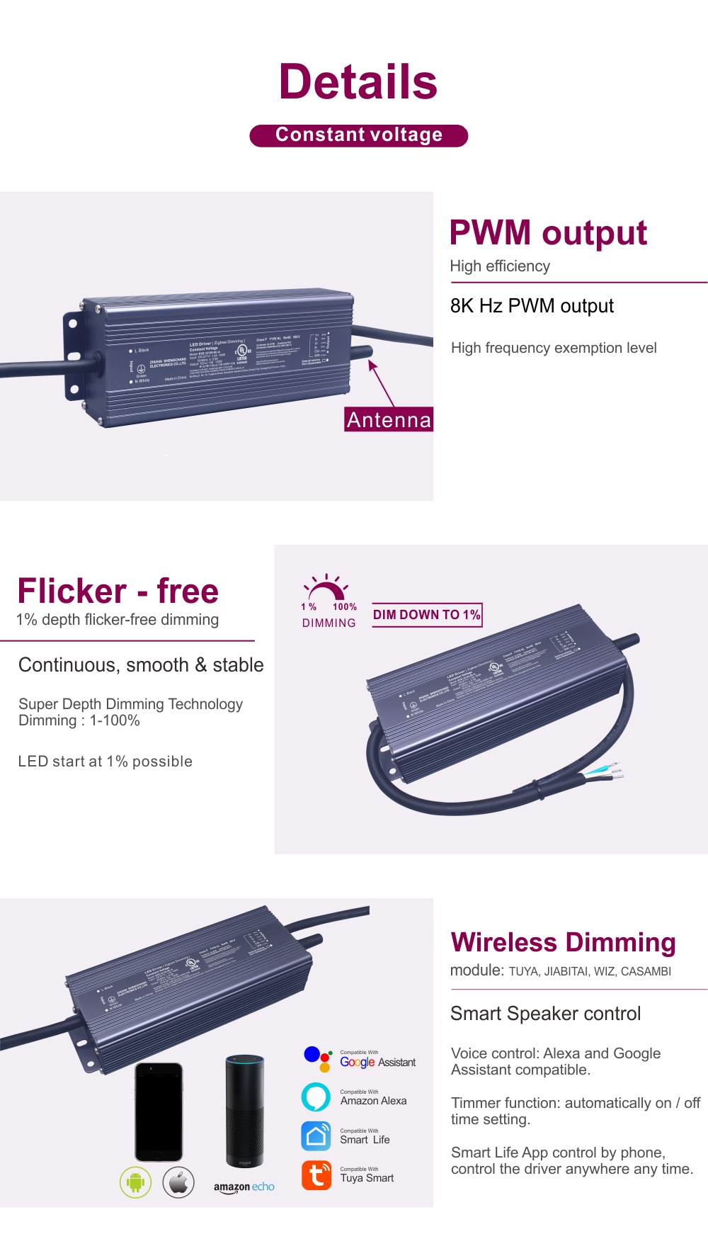 Profund integrat cu ecosistemul Tuya Smart, acest driver LED Tuya Zigbee Wireless Dimming Constant Voltage 120W utilizează cel mai recent protocol de comunicare Zigbee 3.0 pentru o comunicare fără întreruperi, în două sensuri.
