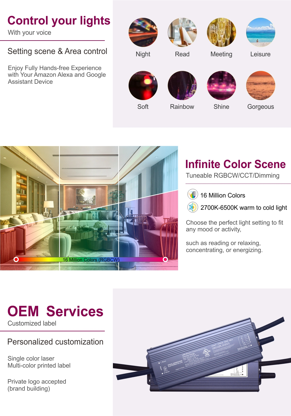 Flexibilitate: controlați în mod independent luminozitatea și pornirea/oprirea pentru diferite zone (de exemplu, iluminare principală vs. iluminare de accent, iluminare superioară vs. inferioară a dulapului).