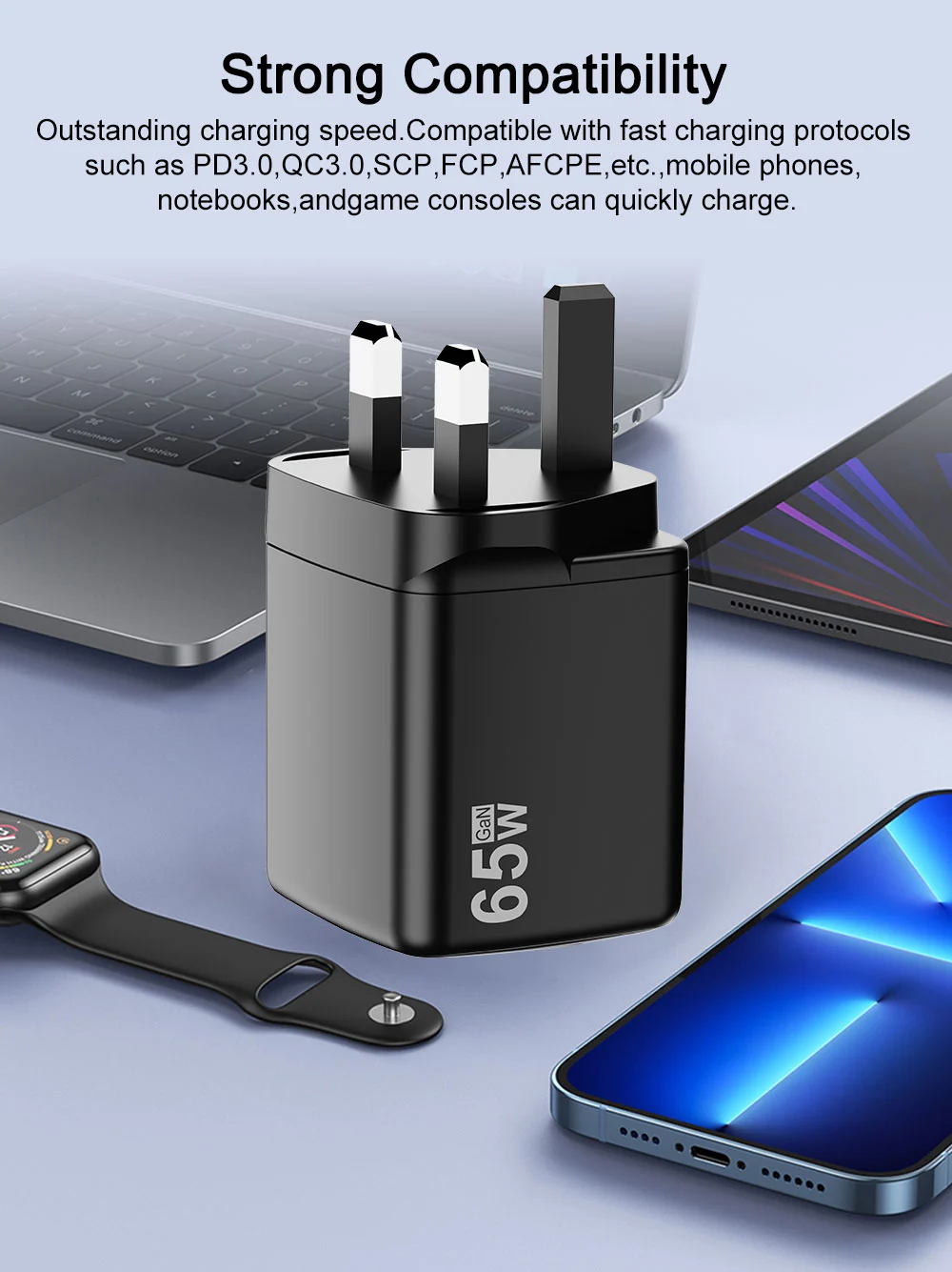 Încărcător rapid de tip priză UK de 65 W Specificații: