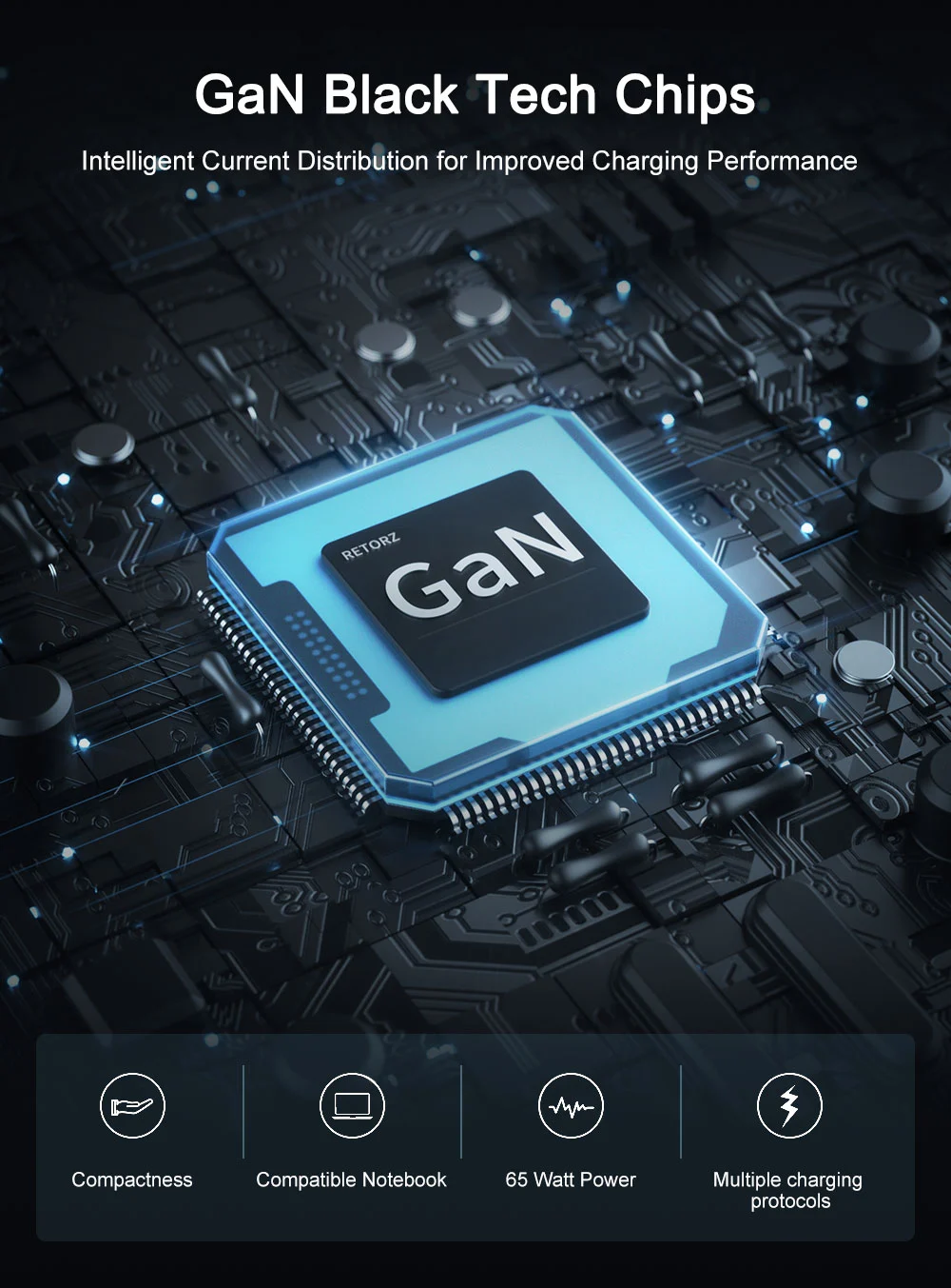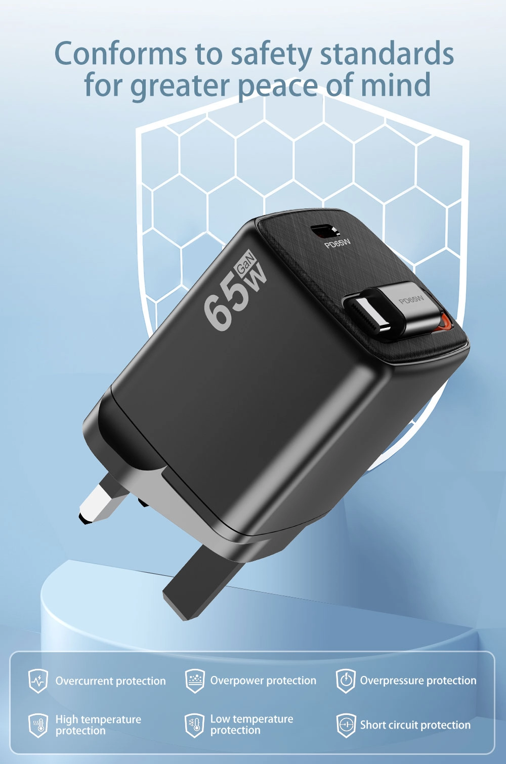 - Încărcare rapidă: ieșirea de 65 W reduce timpul de încărcare, pornind rapid dispozitivele.